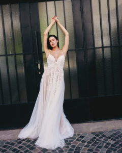 Die Amy Love Kollektion ist ein frischer Blick auf die Moderomantik der modernen Braut. In der Kampagne „Urban Romance“ entführen wir Sie in eine Liebesgeschichte voller romantischer Kleider. Hier können Sie Ihren einzigartigen Stil durch leichten, luftigen Tüll, zarte Spitze, 3D-Applikationen und handgefertigte Dekorationen frei zum Ausdruck bringen. Ausgefallene Akzente in Form von abnehmbaren Ärmeln, fallenden Trägern, gebundenen Tüllschleifen und transparenten Cut-Outs runden die moderne Silhouette der Braut ab.